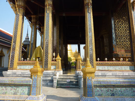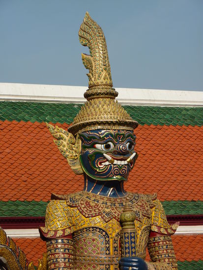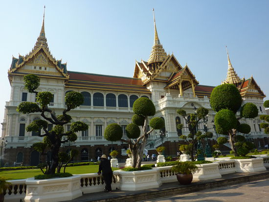 Wie geplant verliessen wir Koh Phi Phi am frühen Nachmittag mit der Fähre. Nach einer zweistündigen Überfahrt nach Krabi wurden wir zum Busbahnhof gebracht, wo wir ca. 50 Minuten auf unseren Bus nach Bangkok warteten. Nach einer ca. zweistündigen Fahrt hielt der Bus bereits wieder. Für die Fahrgäste nach Bangkok hiess es Bus wechseln. Da Pascal und ich beim Reisen bereits ein eingespieltes Team sind, kümmerte er sich um das Gepäck und ich versuchte einen guten Platz im Bus zu ergattern. So kam es, dass wir auf unseren letzten Busreise die Luxusplätze in der vordersten Reihe im oberen Stock schnappen und somit eine geniale Beinfreiheit geniessen konnten. Schlaf fanden wir jedoch beide erst auf der zweiten Hälfte dieser Busfahrt. Nicht zuletzt dank der Euphorie über den gewonnenen FCSG-Match gegen Luzern. Klappt ja doch noch, auch ohne uns! Nachdem wir uns etwas übermüdet um 05.40 Uhr in der früh Bangkok erreichten, trotteten wir zu unserem "Stammguesthouse" New Siam 2, wo wir auch im Voraus bereits ein Zimmer gebucht hatten. Leider war dies noch nicht bezugsbereit. Somit warteten wir im Restaurant bis wir uns pünktlich zur Türöffnung zum Königspalastes begaben. Wir hofften somit noch nicht in die grössten Touristenmassen zu geraten und noch bei angenehmen Temperatur den Palast besichtigen zu können. Die Warteschlange für die Tickets war sehr klein, aber die Menschenmassen aufgrund vieler Reisegruppen bereits sehr gross. Die Bauten sind sehr eindrücklich und auch wirklich schön anzuschauen. Doch nach einer Stunde fanden wir den Weg bereits wieder nach draussen, da die Menschenmassen immer grösser und mühsamer wurden. Anschliessend konnten wir unser Zimmer beziehen und holten noch etwas Schlaf der letzten Nacht nach. Etwas ausgeschlafener begaben wir uns dann zum Einkaufszentrum MBK. Naja, ich bin ja keine Shoppingqueen, aber da hätte ich es auch mehrere Stunden aushalten können. Wir beschränkten uns jedoch nur auf Kleinigkeiten und kehrten am frühen Abend auch wieder zum Hotel zurück. Wir gönnten uns noch eins zwei Fruchtshakes, mehr lag nicht drin, da an diesem Tag grosser Buddhismus-Tag war und kein Alkohol ausgeschenkt wurde. Natürlich statteten wir unserem Lieblingsmassagestudio noch einen Besuch ab und entspannten uns bei einer angenehmen Fussmassage. Am nächsten Morgen hiess es ein letztes mal Ausschlafen, bevor wir uns einen relaxten Tag mit Shoppen, Massage und ein letzter Besuch der Khaosan Road machten. Um halb vier hiess es dann definitiv Abschied nehmen von Bangkok und dies bedeutete auch sogleich das Ende unserer Ferien. Nun steht uns ein langer Flug über Muscat nach Zürich bevor. Wir haben die Zeit sehr genossen und kehren mit sehr vielen positiven Eindrücke und Erfahrungen nach Hause zurück. Gerne wären wir beide noch etwas länger geblieben, freuen uns aber gleichzeitig sehr auf unsere Familien und Freunde. An dieser Stelle möchten wir uns bei unseren Arbeitgebern bedanken, dass uns diese Möglichkeit gegeben wurde. Ebenfalls möchten wir unseren Familien danken, welche diverse Dinge während unserer Abwesenheit geregelt haben, damit es keine böse Überraschungen nach unserer Rückkehr gibt. Für die jeweiligen Livetickermeldungen bei den FCSG-Matches auch noch ein grosses Dankeschön an die Berichterstatter. Letzteres bedanken wir uns noch bei "um die Welt" für die sofortigen Aufschaltungen unserer Berichte. Nun freuen wir uns euch alle wiederzusehen und in die Arme zu schliessen. Biiiiis baaaaald!!!!