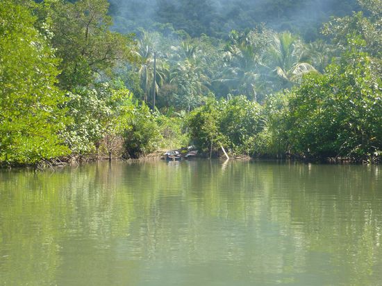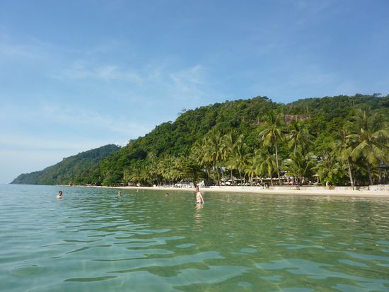 Während ich diese Zeilen schreibe, sitzen wir in einem Minibus der uns zurück nach Bangkok bringen soll. Die letzten fünf Tage in Koh Chang waren einfach herrlich. Das Meer, der Strand, das Wetter. Alles hat gepasst. Zweimal haben wir einen Roller gemietet und sind damit, soweit es die Strassen zuliessen, um die Insel gekurvt. An einem Tag ging es der Westküste mit seinen kilometerlangen Sandstränden entlang. Ganz im Süden ist die Ringstrasse um die Insel noch nicht fertiggestellt. Am zweiten Tag zeigte sich Koh Chang an der Ostküste von seiner ruhigeren Seite und man durchquerte kilometerweise unberührte Natur. Sehr zu empfehlen ist das Kajak-fahren durch die Mangrovenwälder in Salakhok. In erster Linie war aber relaxen und erholen angesagt. Deshalb nun genug der langen Rede. Bilder sagen mehr als tausend Worte. Heute verbringen wir nochmals eine Nacht im New Siam 2 Guesthouse in Bangkok bevor es morgen weiter nach Myanmar geht.