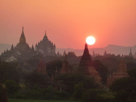 Auf einer Fläche von ca. 40 km² weiss Bagan mit über 2000 Pagoden, Tempeln und anderen Monumenten zu faszinieren.