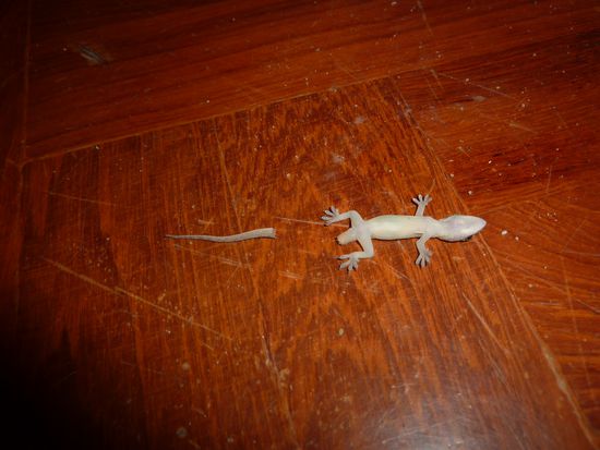 Nicht ganz so positiv endete der Tag für einen jungen Gecko in unserem Zimmer, welcher sich unter meinem Fuss verstecken wollte. In seinen jungen Jahren war er meinem Gewicht leider noch nicht ganz gewachsen. Eine angemessene Bestattung gestaltete sich dann ebenfalls nicht ganz so einfach. Da machte sich doch tatsächlich der Schwanz nochmals selbständig und zuckte etwas vor sich hin. Sorry und R.I.P.
