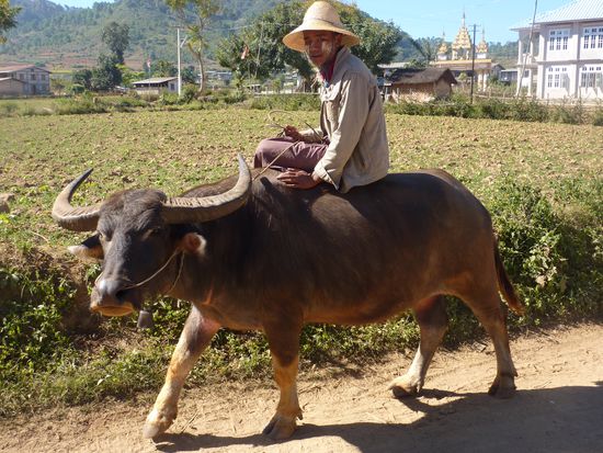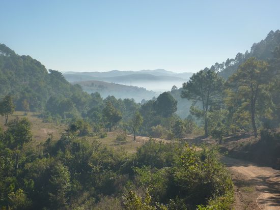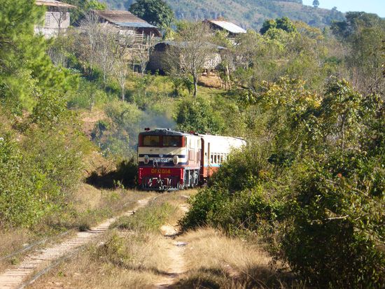 Fast pünktlich um 01.45 Uhr nachts erreichten wir Kalaw. Die Fahrt war trotz den vielen Kurven und meiner anfänglichen Skepsis sehr angenehm. Uns wurde für die Übernachtung das Winner Hotel empfohlen, vor welchem wir überraschenderweise direkt ausgeladen wurden. Nachdem wir das Hotelpersonal weckten, welches bei der Rezeption in Schlafsäcken schlief, konnten wir sogleich auch unser Zimmer ohne Klimaanlage beziehen. Naja, diese war auch keineswegs nötig. Wir haben uns eher nach einer Heizung gesehnt. Nach einer sehr kalten Nacht, wechselten wir unser Standardzimmer in ein Zimmer mit einer Heizung, da wir wirklich nahezu erforen sind. Am ersten Tag erkundigten wir Kalaw zu Fuss. Kalaw ist ein herziges "Städtchen", welches jedoch abends und nachts nur im dicken Pullover zu geniessen ist. Mit der Heizung im Zimmer schliefen wir die zweite Nacht bestens und waren somit für unsere bevorstehende zweitägige Trekkingtour bestens gewappnet. Unser Führer sprach leider nur sehr wenig Englisch. Das nächste mal werden wir darauf achten, dass der Guide Englisch spricht, damit auch unterwegs neugierige Fragen beantwortet werden können. Die Trekkingtour, welche durch Naturschutzgebiete, Dörfer mit winkenden Kindern und durch wunderschöne Landschaften führte, hat uns beiden bestens gefallen. Die Nacht verbrachten wir bei einer einheimischen Familie. Die Tochter haben wir sogleich ins Herz geschlossen. Ich sowieso, da sie mich beim "Tschau Sepp" gegen Pascal bestens unterstützte. Nach einem herzig vorbereiteten Candle-Light-Dinner und einer sehr kalten aber für mich überraschend kakerlakenfreien Nacht kletterten wir aus den Federn, da inzwischen draussen fast wärmere Temperaturen herrschten als in der Hütte selbst. Es war eine sehr abenteuerliche Erfahrung, jedoch schon erschreckend, dass es immer noch Leute gibt, welche weder über fliessendes Wasser noch Strom verfügen. Den Rückweg nach Kalaw war nicht sehr lang und wir waren auch beide sehr froh darüber, da uns beide Blasen an den Füssen plagten. Uns hat die zweitägige Trekkingtour sehr gefallen, welche uns seitens der Hotelchefin empfohlen wurde. Die Trekkingstrecke zum Inle-See, welche wir zuerst in Angriff nehmen wollten, wurde uns infolge übermässigem Touristenandrang abgeraten. Somit beschlossen wir direkt in Kalaw ein wenig zu Trekken und die Strecke zum Inle-See bzw. über Shwenyaung nach Nyaungshwe mit dem Zug zu fahren. Die Fahrt sollte ca. 4 Stunden dauern.