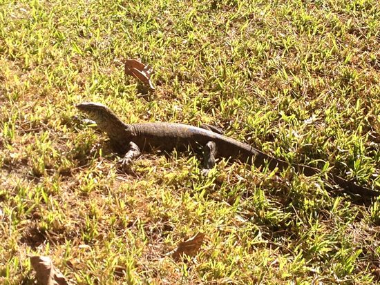 Auf einem Rückweg zum Zimmer entdecke ich diesen grossen, scheuen Waran