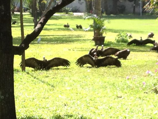 Weiter in Richtung Meer komm ich an der "Geierwiese" vorbei. Hier werden jeweils um 11:00 Uhr die Geier gefüttert. Die schlauen Vögel stellen sich unter die Sprinkleranlage zum Duschen; dann lassen sie sich mit ausgebreiteten Flügeln in der Sonne trocknen.