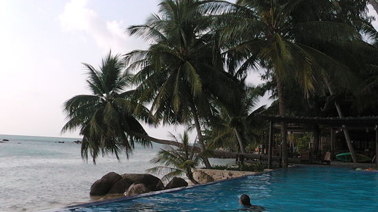 Ein kleiner schickes Resort mit sauberen Zimmern und Klimaanlage. Vom Pool blickt man direkt aufŽs Meer...