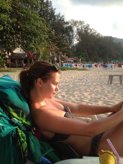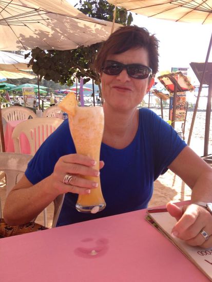Mit feinen Drinks, relaxen, schwimmen im Meer geniessen wir den Tag am schönen Nai Yang Beach.