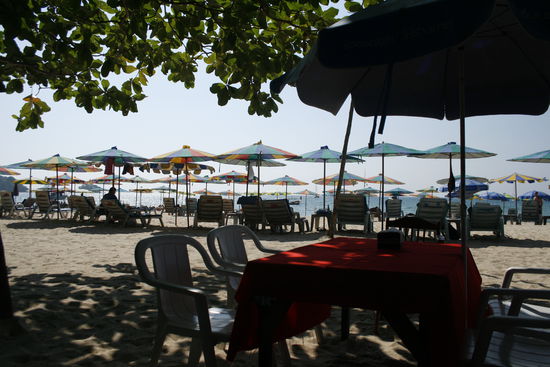 Der erste Eindruck für mich war: "es isch extrem heiss!" - die Hitze hatte mich wie eine Welle überrascht. Als wir uns umkleideten, in etwas leichtere und kürzere Kleider als in der Schweiz notwändig waren - gings auch schon etwas besser. So gings los auf den Umgebungsspaziergang. Nur einige Schritte vom Resort entfernt, sah man schon den wunderschönen Strand und auch schon die erste Bekannte von Ines, Ohrn! Es ist unglaublich schön zu sehen, wie sich Menschen nahe stehen, auch wenn man sich nur für einige Tage einmal im Jahr sieht! Ohrn besitzt ein kleines aber feines Restaurant direkt am Strand - wir verabschiedeten uns von ihr und ihren Mitarbeitern und führten unseren Spaziergang fort.