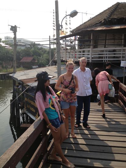 Jana: Um zum Markt zu gelangen müssen wir eine "Schiffsbrücke" überqueren. Das ist eine etwas ungewohnte und wackelige Angelegenheit, jedoch sehr interessant.