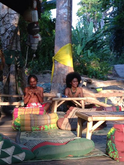 Am nächsten Tag haben wir uns am späteren Nachmittag aufgemacht, die andere Seite der Insel auszukundschaften. Auf halbem Weg kommen wir an einer Bar mit luftiger Terrasse vorbei, die zwei Typen sehr hübsch und originell hergerichtet haben.