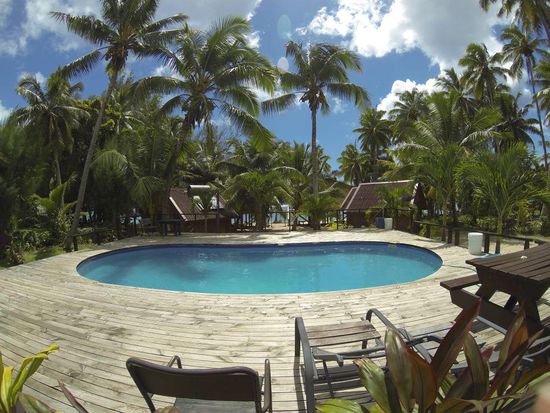 Wir bedankten uns für die Info und gingen unserer Wege. Mit dem Gedanken und einem viel zu teuren Flug im Hinterkopf gingen wir aus dem Reisebüro raus und tranken mal ein Bier. Kurz das Smartphone gezückt und selbst einen Blick auf die Flüge geworfen und siehe da, die sind günstiger als Flüge auf die Fijis, tja und den Rest könnt ihr euch denken. Flug gebucht, aber keine Unterkunft .............wieder mal richtig mitgedacht, aber nach eingehender Recherche haben wir eine Hütte für uns alleine in direkter Strandlage für weniger als ein Hostel in Auckland gefunden. Und so liegen wir hier jetzt das erste mal in der Südsee, auf Rarotonga. Den Blick auf das türkisblaue Meer gerichtet und erwischen uns einfach beim Nichts tun.