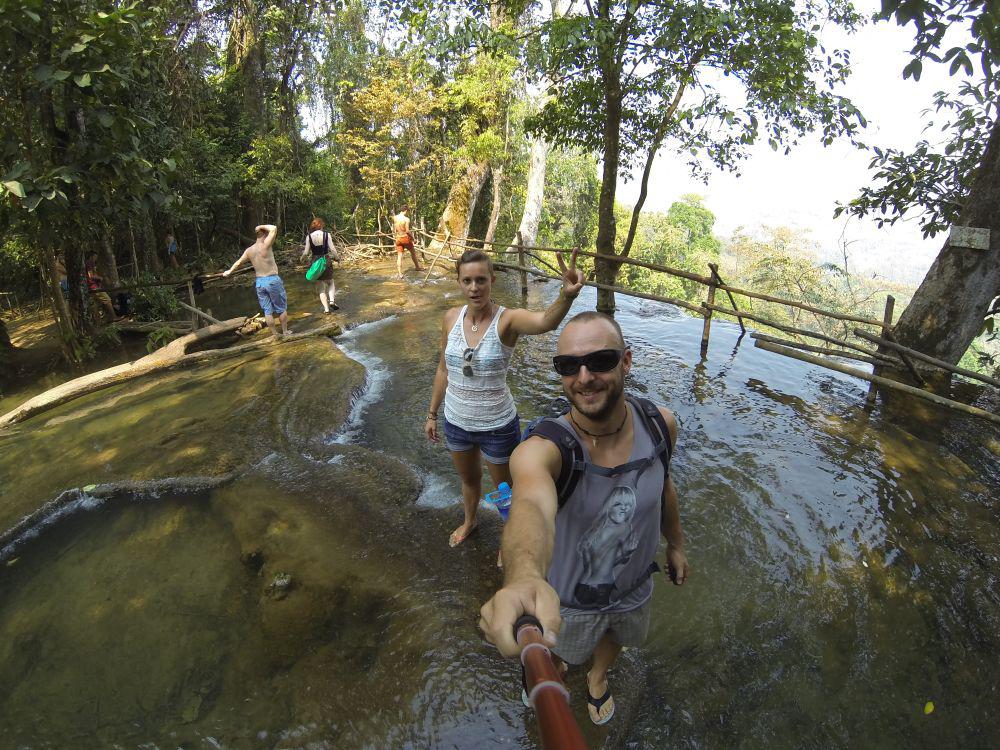 Einen richtig schönen Ausflug machten wir an unserem letzten Tag in Luang Prabang und zwar zu den Kuang Si Wasserfällen. Nachdem wir schon so viel davon gehört haben, nahmen wir uns einen Minivan und fuhren dort hin und es war wirklich eine unvergessliche und unwirkliche Kulisse. Aber nach vier Nächten war dann auch genug, zumindest hatten wir den Eindruck, dass wir mehr als genug gesehen haben. Und auf gehts zurück Richtung Süden ins Ibiza von Laos: Vang Vieng, wo Tuben eine Hauptattraktion darstellt und alles Happy ist, aber warum alles Happy ist verraten wir noch nicht.