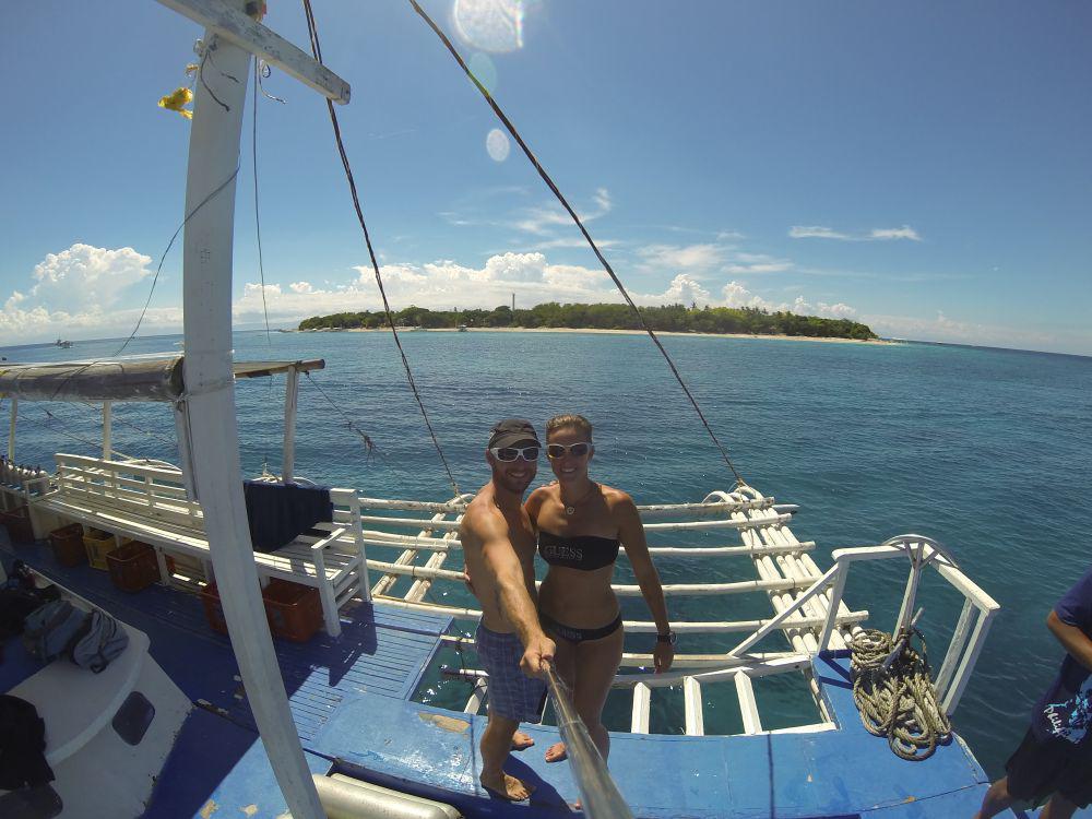 Wir freuen uns schon wieder auf die kalten Seen in Österreich, wenn wir zurück kommen ! Im Hintergrund sieht man die Insel Balicasag.