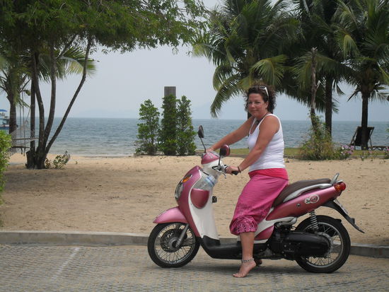Heute Morgen mussten wir vom Bamboo ins Hornbill umziehen. Mit unseren schweren Rucksaecken leichter gesagt als getan. Also erst mal ins Village gelaufen und Roller mieten. Beim Ersten alle Roller vermietet,beim Zweiten auch, beim Dritten Glueck gehabt. Also fuer 250 Bht pro Tag jeder einen Roller. Rucksaecke vom Bamboo geholt, im Hornbill eingecheckt und ab auf die Roller, Insel erkunden.