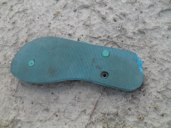 Dann wollten wir mit unseren Freunden Volleyball spielen. Aber wie wohl schon ein paar mal erwähnt, ist das ein ziemlich tierischer Urlaub. Zum Ball spielen wollte ich meine Flip Flops wieder anziehen, die ich am Pool stehen gelassen habe - und so habe ich sie wieder vorgefunden:
