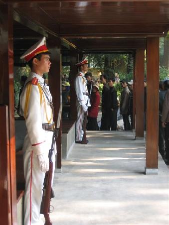 Trotz alle dem ist bei der Bevoelkerung eine zutiefste Bewunderung/ Verehrung zu spueren. Beim Besuch des Mausoleums (Fotografieren im Inneren natuerlich verboten) war eine tiefse Stille und Ehrfurcht zu spueren. Vor dem betreten des Gebaeudes gab es genaue Verhaltensmassregeln. Nicht stehen bleiben, Haende aus den Taschen, Hut ab .... Und ueberall standen Wachen die penibel darauf achteten dass all diese Verhaltensmasregeln auch eingehalten werden.