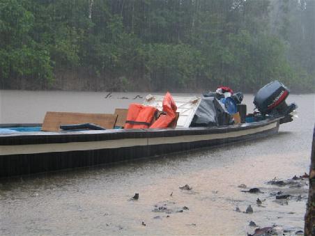 Die Tour sollte uns auf den Fluessen bis an die Grenze von Peru und zurueck fuehren. Und so ging es dann am naechsten Tag auch gleich im Motorkanu los.