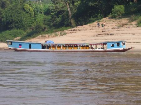 Die Fahrt sollte zwei Tage dauern und fuerhte uns tatsaechlich durch atemberaubende Landschaften, wo sich der Mekong durch Schluchten windet um dann flugs darauf in weiten Taelern weiter zu fliesen. Was wir allerdings nicht bedacht hatten, dass die Kommunisten mittlerweile auch die Marktwirtschaft entdeckt hatten und das Boot bis zur Oberkante mit Pesonen besetzt hatten.