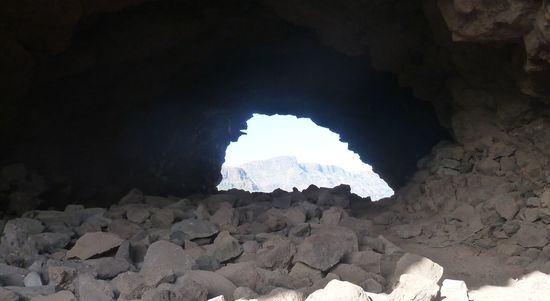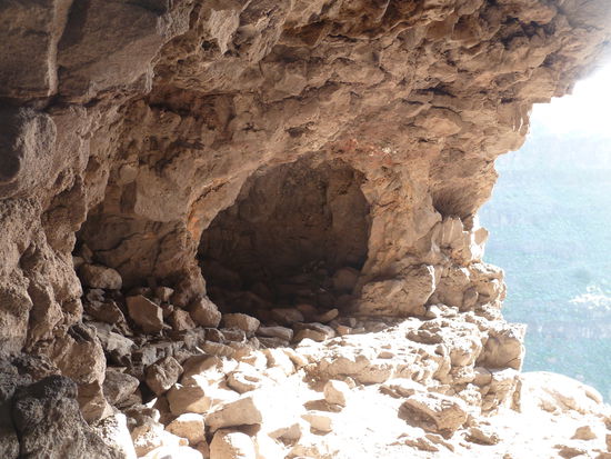 Wir steigen ein paar Schritte nach oben und finden diverse Höhlen - bei der letzten kann man sogar vollständig durch das Felsmassiv auf die Westseite laufen.