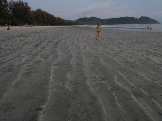 Als Wiederholungstäter wissen wir schon, was es zu tun gibt auf Ko Phayam. Ein paarmal geht's zum Ao Yai, einem sehr langen und bei Ebbe sehr breiten Strand zum "Wellen hüpfen" (Bodysurfing würde sich wohl besser anhören ) und am Abend (am Tag ist es viel zu heiß dazu) spazieren gehen. Mit Schnorcheln ist leider nicht viel los hier. Einmal geht's dennoch zu einem kleinen Strand, Ao Peeb, mit vorgelagertem Riff. Der Strand ist sehr schön mit Primärwald rundherum. Hoffentlich bleibt das auch so. Seit dem Vorjahr wurde leider schon etwas gerodet.