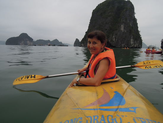 Dann noch eine Runde Kajaking zu einer kleinen Höhle und um einen der ca. 2000 Karstfelsen / Inseln herum.
