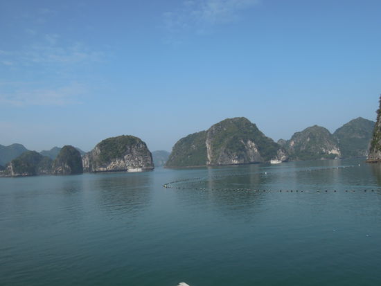 Einigermaßen ausgeschlafen geht es ca. 3,5 Stunden mit dem Bus zur Halong Bucht. Dort werden wir gleich zu unserem Boot, auf dem wir übernachten werden, gebracht. Zwar sehr kleine, aber sehr schöne Zimmer am Boot. Zum erstenmal seit 50 Tagen Dusche mit Duschwand! Noch dazu mit großem "Regenwald"- Duschkopf! Ist aber keine Luxusreise. 2 Tage mit Transfer, Essen, Besichtigungen, Übernachtung usw. 72€.