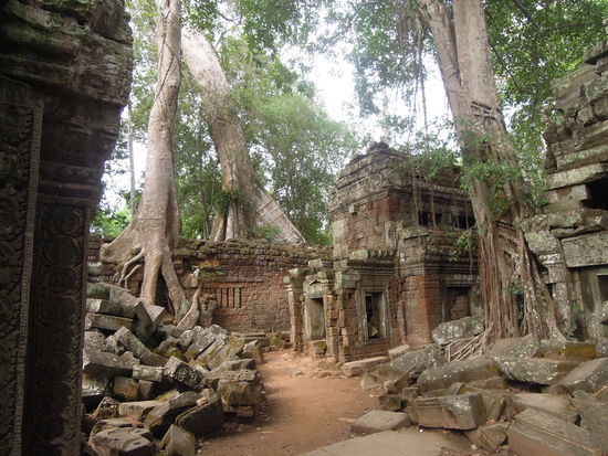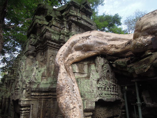 Mit dem TukTuk (12$) geht es zum Ta Prohm. Die Tempelanlage ist wunderschön am Morgen. Bis 9.00 ist es auch hier relativ ruhig und eine buddhistische Zeremonie, mit "Meditationsmusik" findet gerade statt!