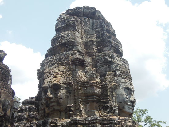 Während dann die meisten Reisegruppen beim Mittagessen sind, sehe ich mir Angkor Thom an. Im Banyon sehen einen von über 50 Türmchen lachende Gesichter an.