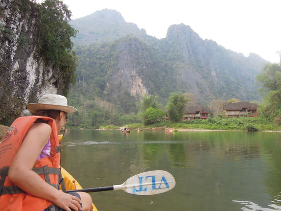 Danach geht es mit dem Kajak ca. 2 Stunden lang zurück nach Vang Vieng. Etwas anstrengend, aber schön. Das Wasser ist relativ frisch. Gut, dass wir nicht die Tubingvariante gewählt haben. Ich freu mich schon auf das warme Meer in Südthailand!