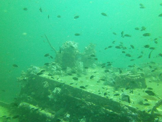 Auch die Seepferdchen konnte ich wieder sehen (die sind so toll!) und Nudibranches und, besonders toll, mehrere Sepia. Und Schwärme von Tintenfischen. Zu meiner großen Freude sah ich auch mehrmals meinen Lieblingsfisch, den gelben gepunkteten Kofferfisch. Ebenso große Freude hatte ich beim Betauchen des Wracks King Cruiser. Das ist immer ein großes Abenteuer und ich fühl mich da jedes Mal wie in einem dieser spannenden Tauchfilme, die ich früher immer so gerne gesehen habe. So schade, dass mein Film nichts geworden ist! Aber es geht sowieso nichts über das Live-Erlebnis. Am Wrack gab es außerdem riesige Schwärme von Fischen! Der Wahnsinn. Tauchen ist toll. Ich liebe es. Auch wenn es nichts zu sehen gibt (kommt hier aber nicht vor!). Einfach unter Wasser sein