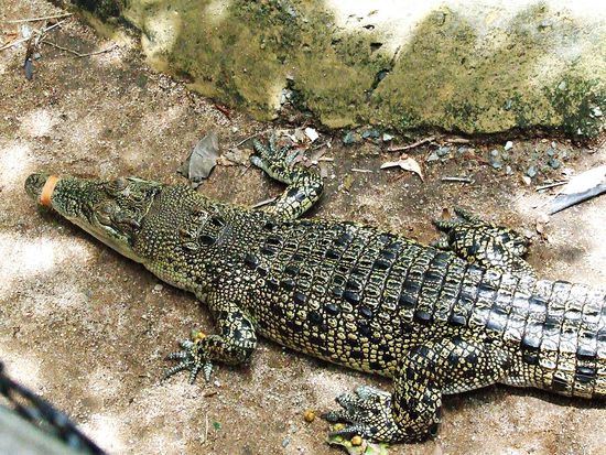Als erstes hielten wir einen kleinen Aligator. Er war ca 1m lang und seine Schnauze war abgebunden... das arme Tier, aber ohne das haetten wirs auf keine Fall gehalten.