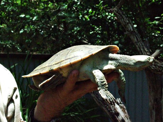 Hab mich ganz schoen erschrocken als der Bush Guide das Tier am Schwanz hochgezogen hat.
