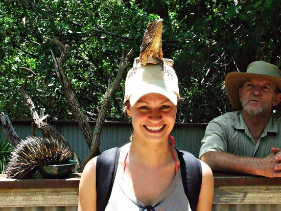 Weiter gings zu den Wasserschildkroeten und dem Leguan. Den hat er uns auf den Kopf gesetzt.