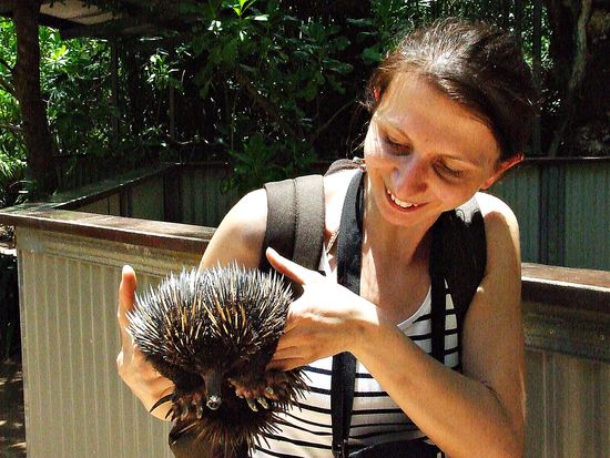 Am Bungalow Bay haben wir eine guided bush tour gemacht bei der wir viele Tiere auf dem Arm halten durften.