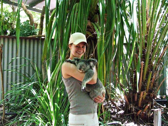 Das Highlight war auf jeden Fall der supersuesse und superflauschige Koala. Leider hatten wir ihn nicht allzu lange auf dem Arm. Er hat sich richtig in unsere Arme gekuschelt...so suess!!!