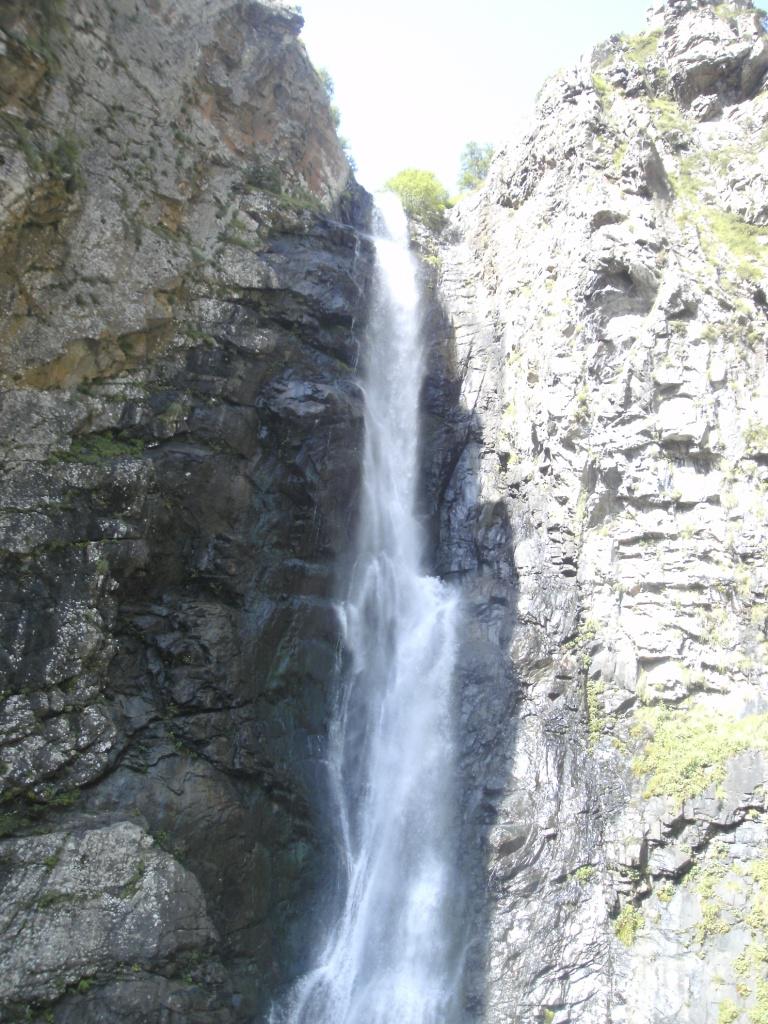 Am nächsten Morgen war der Himmel klar und der Berg Kasbek schien zum Greifen nah. Nachdem ich den Berg auch mit dem Fernrohr eingehend studiert hatte, mietete ich mir einem Tipp der Pensionswirtin folgend für den Vormittag "inoffiziell" für 30 Euro ein Auto mit Fahrer und ließ mich in die Darjali-Schlucht bis kurz vor die russische Grenze fahren. Von dort ging es zu Fuß eine Stunde den Berg hinauf bis zum Gveleti-Wasserfall.