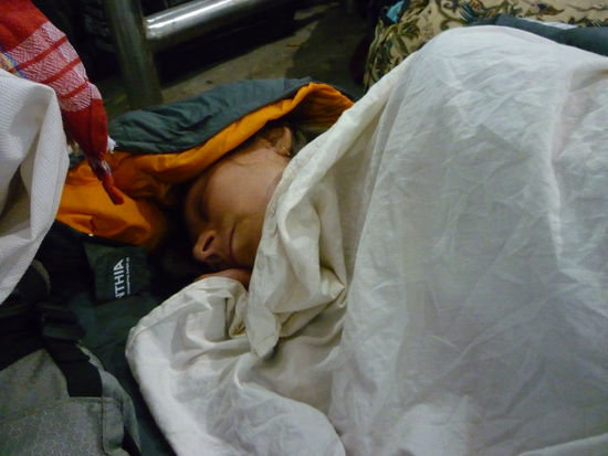 Die Hotels sind fast alle ausgebucht, zu teuer oder ohne Fenster. So geht es dann nach ein paar Stunden zurück zur Old Delhi Station. Dort machen wir uns am Bahnsteig auf useren Matten für die Nacht bequem.