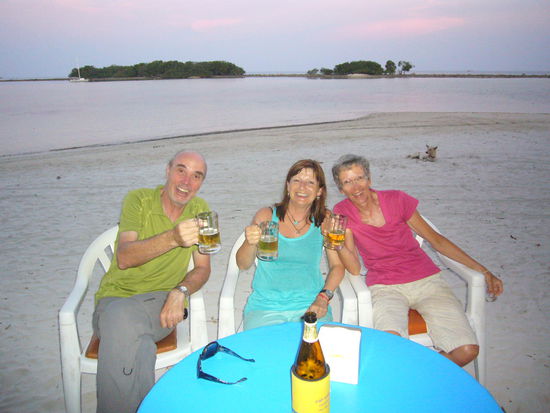 Tagsüber lag wir im Schatten der Bäume in einem Liegestuhl und Marianne und ich planschten stundenlang im herrlichen Meer bis wir ganz verschrumpelt waren (heee, nicht lachen, das verging wieder!!!!).