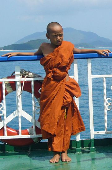 viele kleine Mönche waren an Bord - sie verabschieden sich auch von Koh Samui mit einem letzen Blick