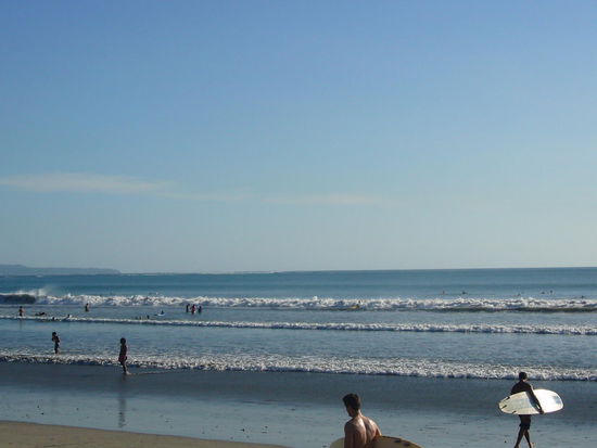 Den letzten restlichen Tag alleine in Bali verbrachte ich noch mit Reiseberichtschreiben und einen kurzen Strandbesuch. Das Meer in Kuta ist ein Suferparadies und daher nicht ideal zum Schwimmen. Es macht aber Spass zuzuschauen, wie braune und weiße Beachboys und auch viele Mädchen mit den Wellen kämpfen.