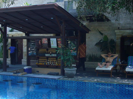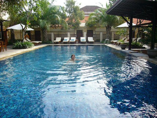 Das Hotel "Grand Masena" war dann ganz o.k. für 2 Nächte. Im Internet habe ich zwei ****Hotels ausgesucht, denn wenn Manni kommt werden wir die ersten Tage etwas luxuriöser wohnen. Am nächsten Tag nach dem Frühstück fuhr ich mit einem Mopedtaxi zu diesen beiden Hotels, um eines davon persönlich auszusuchen. Meine Wahl fiel auf das Best Western Kuta Villa.