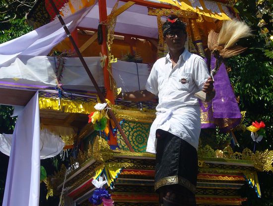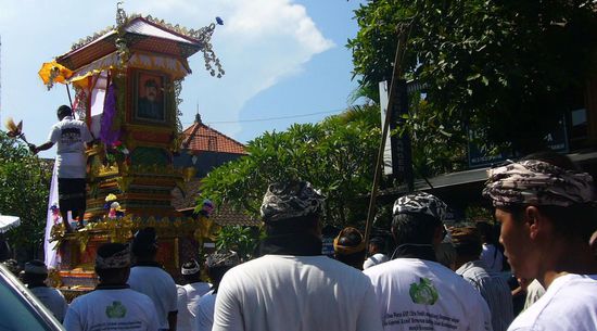 An unserem letzten Urlaubstag gabs in Sanur so eine Verbrennunszeremonie. Voran schritten viele Frauen in den gleichen Farben gekleidet mit Opfergaben auf dem Kopf