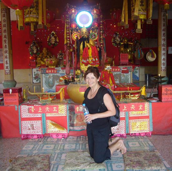 Am Vormittag habe ich den Chinesischen Tempel besichtigt. Sehr schön. Ich bin auch weiter die Stufen hoch gegangen zu Buddhas Fußabdruck. Als ich so alleine langsam (es war wieder Mittag) die Stufen hinaufstieg überkam mich wieder einmal die Erinnerung an den Überfall in Indien, wo ich in Maysore am Abend 1000 und eine Stufe von einem Tempel hinunterstieg und sich plötzlich eine Metallschlinge um meinen Hals legte. Dann war jede Stufe für mich eine Überwindung, aber ich wollte es schaffen und es ist mir gelungen!