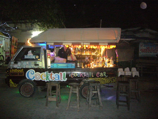 Vor dem Guesthouse Sabai-Garden (das ist ein hellhöriges Holzhaus) steht am Abend ein mobiler Cocktail-Bus. Total nett (habe ich letztes Jahr zum ersten Mal in BKK gesehen), aber auch total laut bis in die Nacht hinein. Die Nachbarn vom Sabai-Garden leben auch noch und haben extrem die halbe Nacht geschnattert. Es sind Gänse, ich kenn sie noch vom letzten Besuch!!!