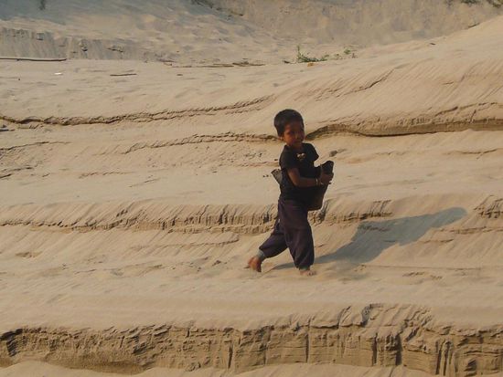 Es ist immer schön einen großen Fluss in Asien entlang zu fahren. Man sieht so viel vom Alltag der Menschen. Männer fischen, Frauen waschen Wäsche, Kinder spielen unbeschwert im Wasser und am Abend wird im Fluss gebadet, die Frauen züchtig verhüllt mit ihren traditionellen Röcken.