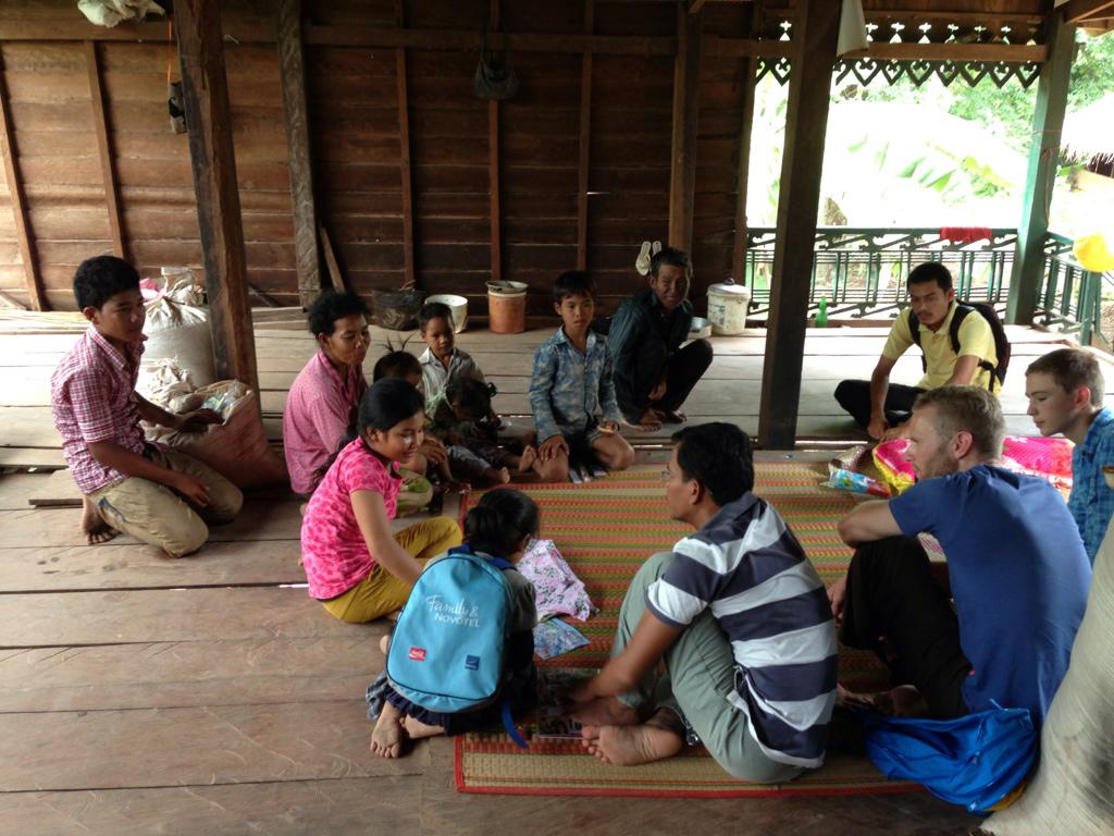 Poeury lebt mit ihrer Familie in einem Holzhaus, welches auf 4 Stempeln steht. Wir wurden nach oben gefuehrt. Wir nahmen auf zwei Bambusmatten platz. Der Schlafplatz von ihr und ihren Geschwistern.