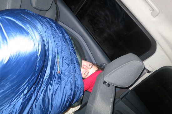 Blieb also nur noch kurz in den Genfer See schiffen, Zähne putzen, mit gefrorenen Fingern Skiunterwäsche anziehen, Vordersitz nach hinten klappen und ab in den wie bereits erwähnt mehr oder weniger warmen Schlafsack...