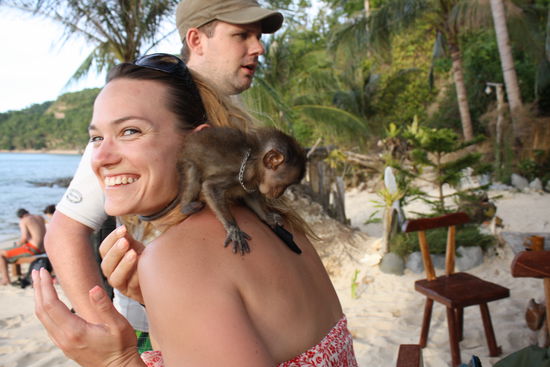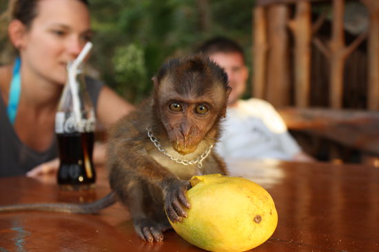 Die Besitzerin des Orange Pearl Beach Ressorts besaß einen kleinen Babyaffen der uns viel Spaß bereitete.....