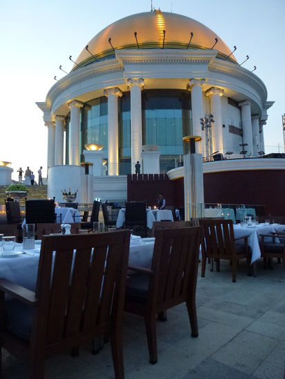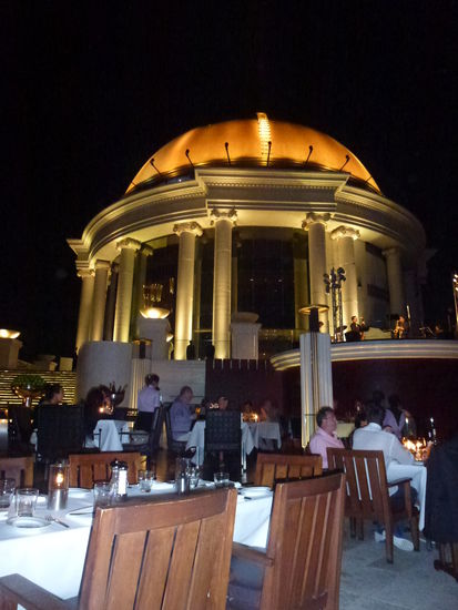 An der Skybar gab es zum Sonnenuntergang einen leckeren Cocktail. Anschließend wurden wir freundlich zu unserem Tisch begleitet.