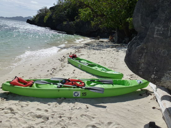 Vor der gestrigen Bootstour hatten wir gesehen, dass man sich Kajaks ausleihen kann. Begeistert von der Idee buchten wir 2 Kajaks für je 500 Peso für den ganzen Tag.