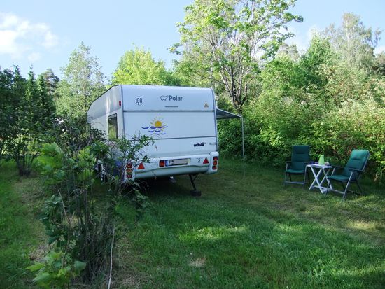 Der Platz liegt etwa 1 Km außerhalb der Stadt in einem Waldgebiet an einem Hang. Alle Einrichtungen sind schlicht aber gepflegt. Wie bereits in Turku stellten wir auch hier fest, daß der Küchenbereich des Platzes komplett eingerichtet war. Es gab mehrere Kaffeemaschinen, Wasserkocher, Elektroplatten, Mikrowellen, Backöfen. Das haben wir so später auf allen finnischen Campingplätzen vorgefunden.