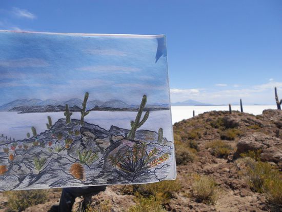 Die Einfahrt auf den Salar von Uyuni aus beginnt am Süd Ost Ufer bei Colchani. Dort befinden sich auch einige der Luxus Salzhotels. Folgt man den Spuren Richtung Westen erreicht man nach einer halben Stunde Fahrt das Hostal "Palacio de Sal". Weiter nach Westen erreicht man nach etwa einer weiteren Stunde Fahrt die Isla Inca Huasi. Die Fahrt über den Salar ist einer der Höhepunkte eine Südamerikareise und kann mit den Adjektiven phantastisch und surreal beschreiben. Man findet in 3800m Höhe eindeutige Felsgebilde die aus Korallen gebildet wurden und über Jahrmillionen durch die Plattentektonik angehoben wurden.